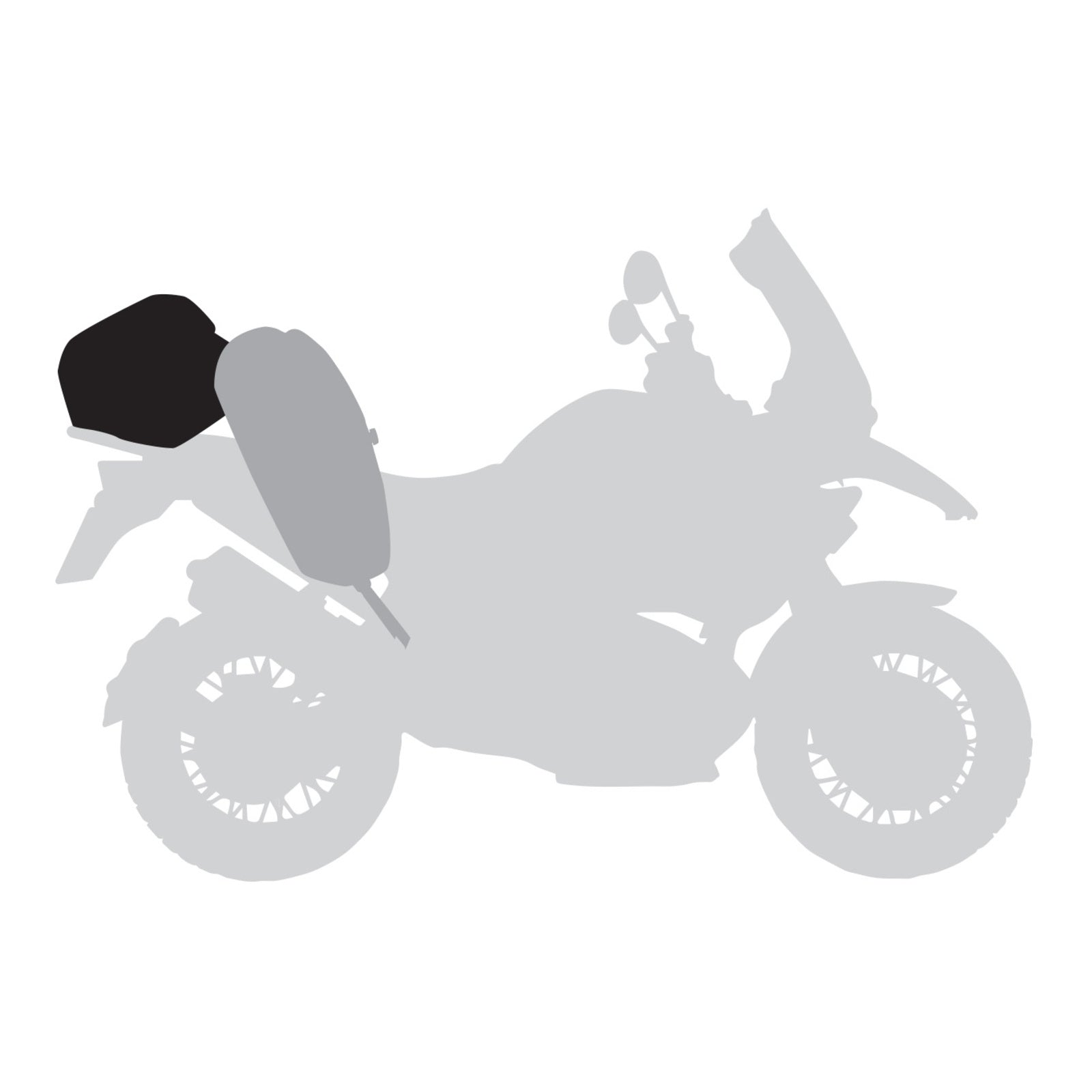The bag is strapped to Giant Loop's Coyote or Great Basin saddlebags using their integrated beavertail strapping system. The Tillamook also secures to any four solid anchor points (such as a luggage rack) using its four integrated anchor straps.