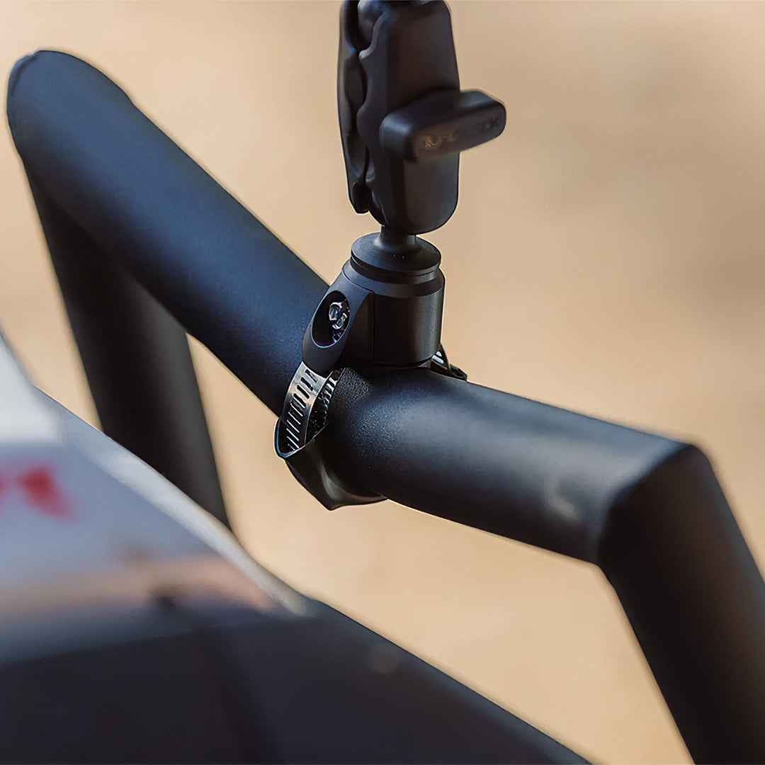 The Quad Lock 360™ Roll Cage Hose Clamp Base fits all bar diameters between 32mm and 60mm. Build your ideal mount with Quad Lock 360™ to mount your smartphone or action camera on your vehicle's roll cage or other suitable bars.